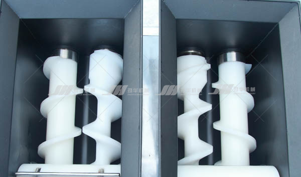 4.加厚不銹鋼料斗內(nèi)采用特氟龍涂層,似于電飯鍋內(nèi)涂層,防粘、耐磨、易清潔。皮斗/餡斗各可裝25公斤, 省時(shí)省力省人工;